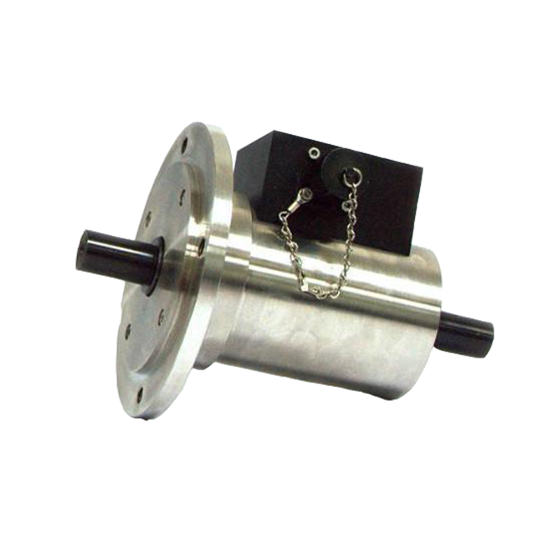 單法蘭軸式靜態(tài)扭矩傳感器測(cè)量原理: 將專(zhuān)用的測(cè)扭應(yīng)變片用應(yīng)變膠粘貼在被測(cè)彈性軸上并組成應(yīng)變橋,向應(yīng)變橋提供電源即可測(cè)得該彈性軸受扭的電信號(hào)。將該應(yīng)變信號(hào)放大后,經(jīng)過(guò)壓/頻轉(zhuǎn)換,變成與扭應(yīng)變成正比的頻率信號(hào)。本系統(tǒng)的能源輸入及信號(hào)輸出是由兩組帶間隙的特殊環(huán)型變壓器承擔(dān)的,因此實(shí)現(xiàn)了無(wú)接觸的能源及信號(hào)傳遞功能。